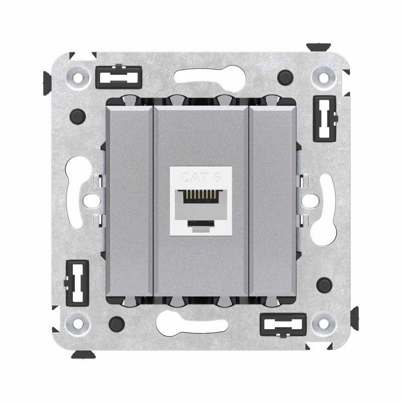 Розетка компьютерная 1-м СП Avanti "Закаленная сталь" RJ45 кат.6 без шторок механизм DKC 4404693