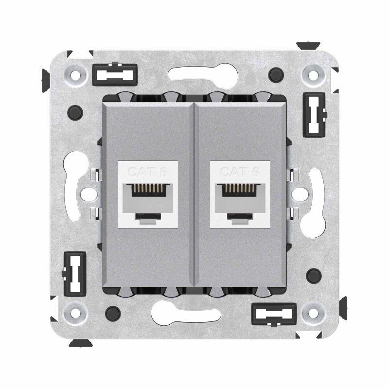 Полное описание: Розетка компьютерная 2-м СП Avanti "Закаленная сталь" RJ45 кат.6 без шторок механизм DKC 4404694