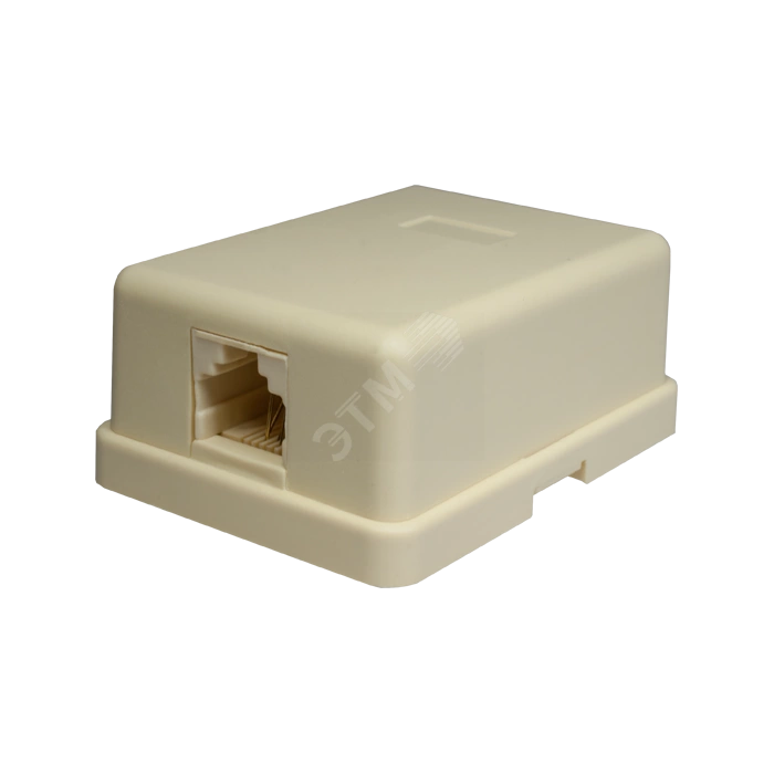 Неэкранированная телефонная розетка настенного монтажа. Имеет 1 порт RJ-12 (6р4с). Для подключения проводников кабеля используются 4 винтовых контакта. В комплект розетки входит двусторонняя клеевая площадка и винты для крепления к стене.
