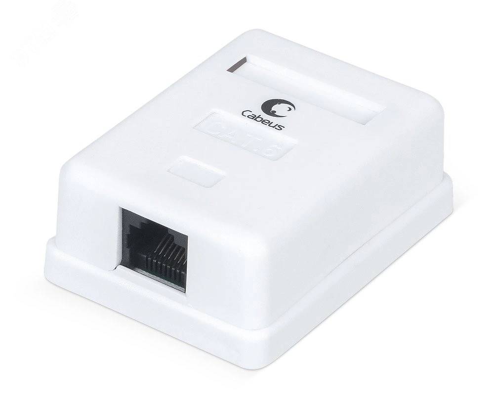 Неэкранированная компьютерная розетка настенного монтажа. Соответствует характеристикам категории 6. Имеет 1 порт RJ-45 (8р8с). На печатной плате установлены контакты типа Dual IDC с цветной маркировкой по двум стандартам - T568 А и B. Ножи контактов располагаются под 45, что лучше сказывается на передаточных характеристиках разъема. Для заделки проводников подходят ножи тип 110 и Krone. В комплект розетки входит двусторонняя клеевая площадка, винты для крепления к стене и стяжки для фиксации кабелей в розетке.