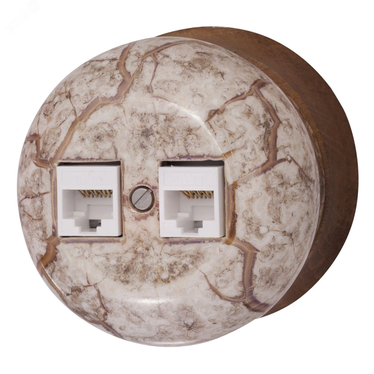 Полное описание: Розетка компьютерная RJ45 CAT.5е,двойная. Фаберже, керамика, цвет мрамор золото