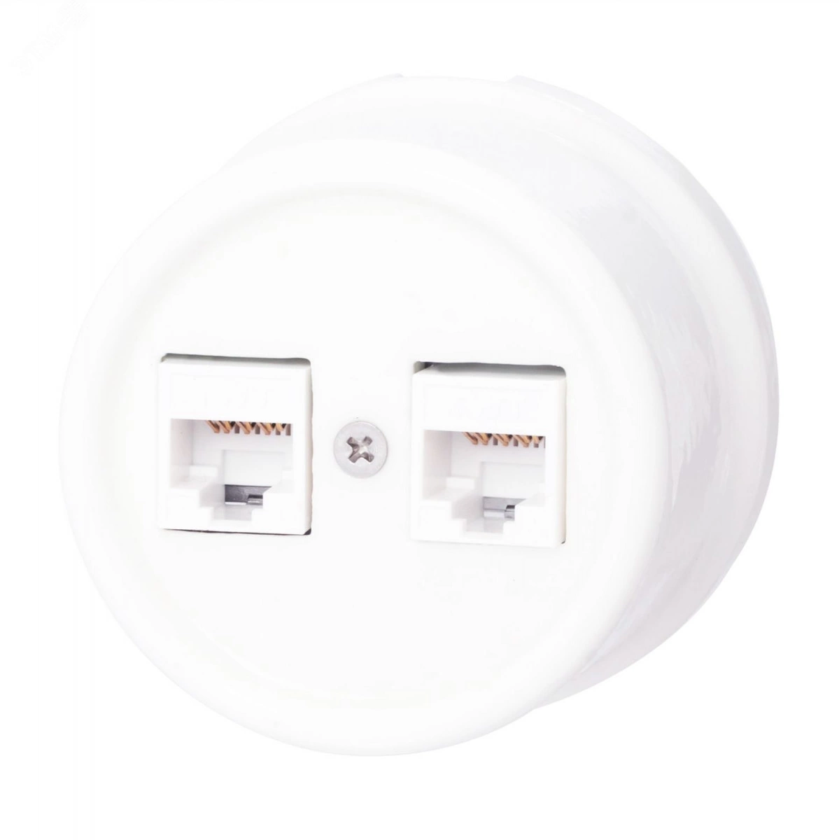 Розетка Лизетта RJ45 информационная двойная, керамика, цвет белый