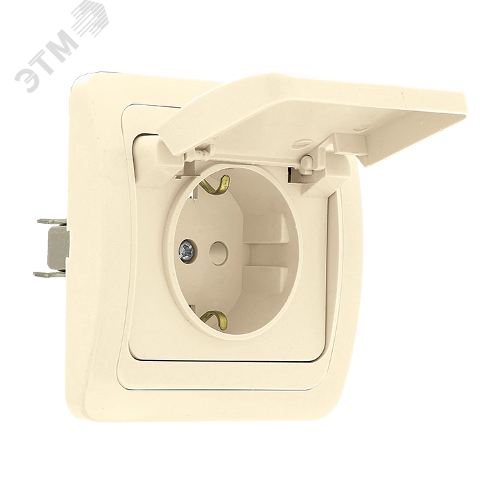 Розетка Лондон 1-местная с заземлением и крышкой 16А бежевая с защитными шторками