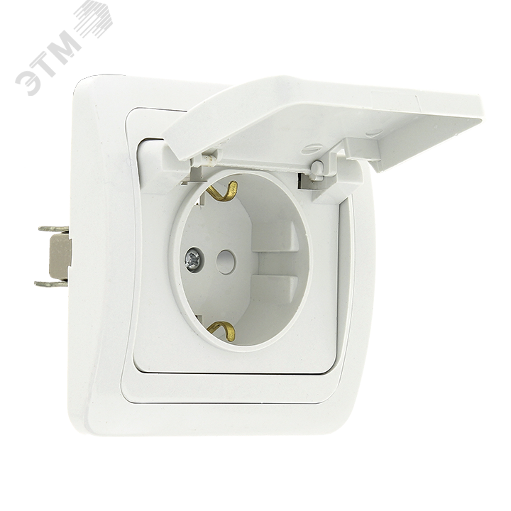 Розетка Лондон одноместная с заземлением и крышкой 16А белая с защитными шторками