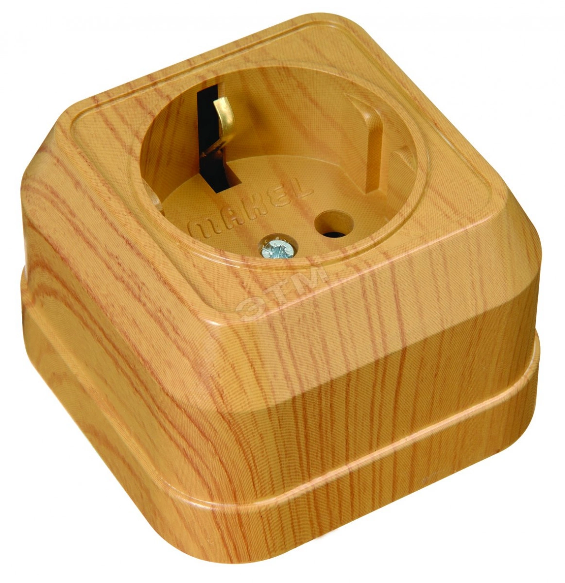 Полное описание: Розетка наружная с заземлением (квадрат) дуб