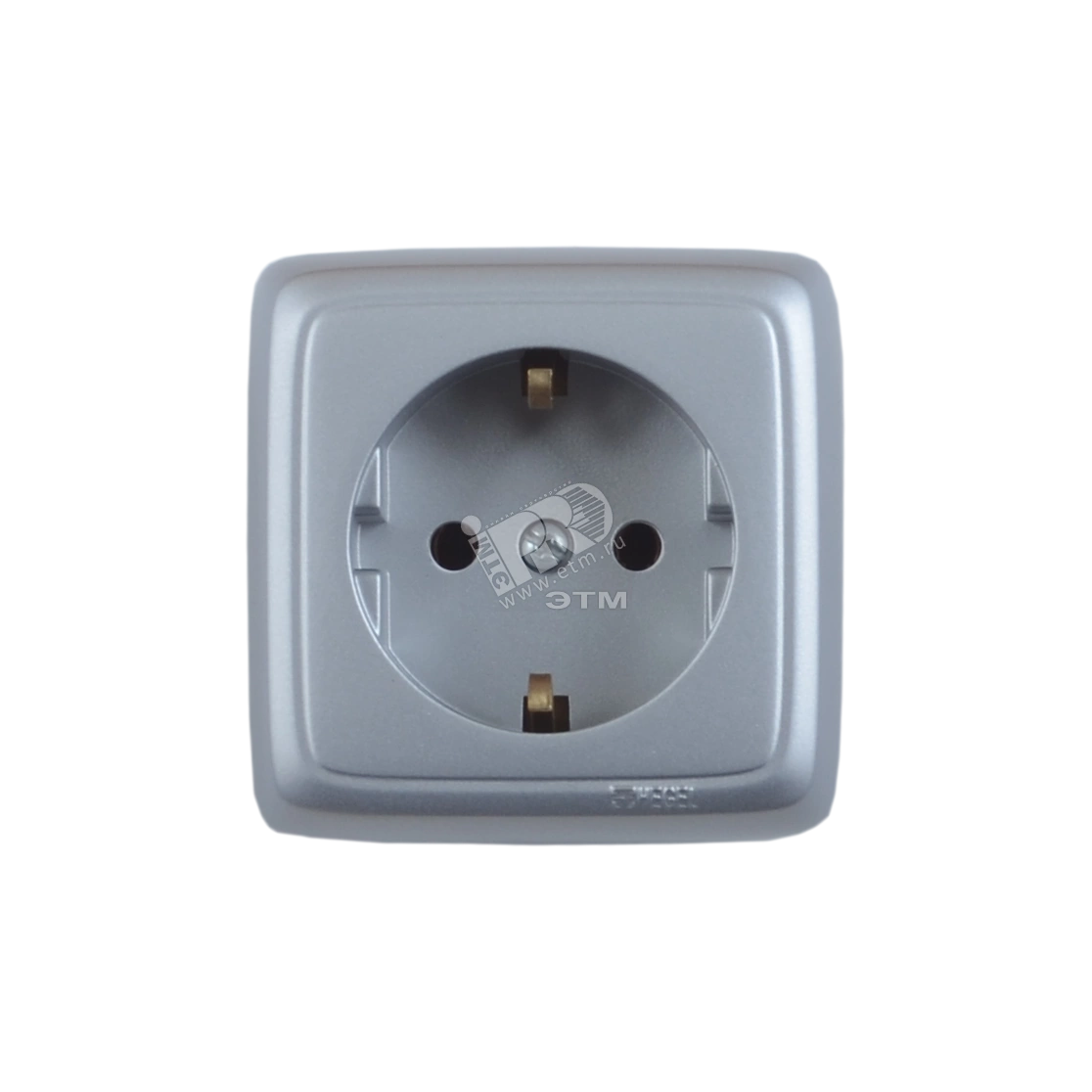 Розетка наружная с заземлением с изоляционной пластиной серебро