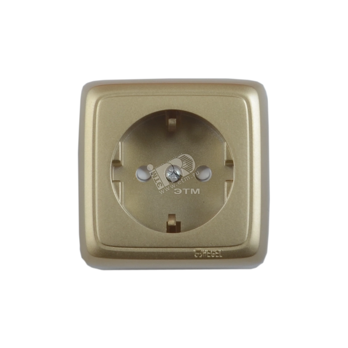 Розетка наружная с заземлением с изоляционной пластиной со шторками золото