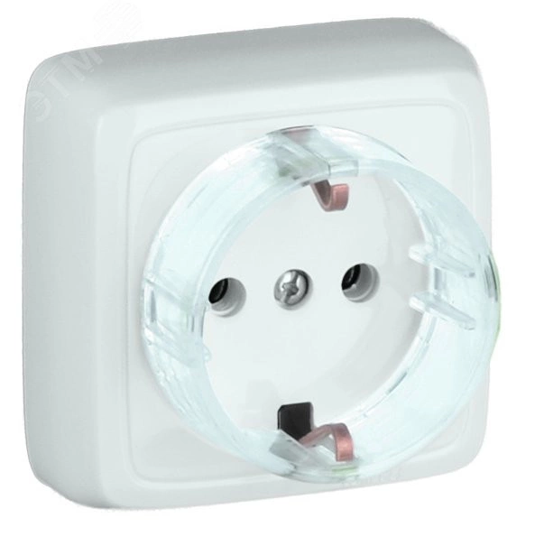 Розетка наружная с заземлением с изоляционной пластиной (стакан) белая