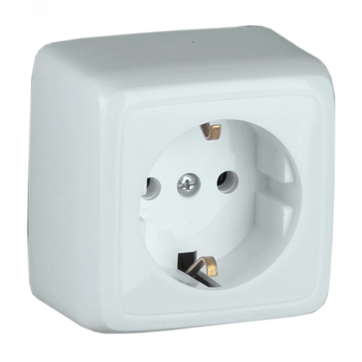 Розетка наружная с заземлением с изоляционной пластиной белая