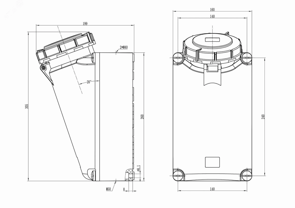 Розетка наружной установки IP67 125 A 3p+E+N 400V