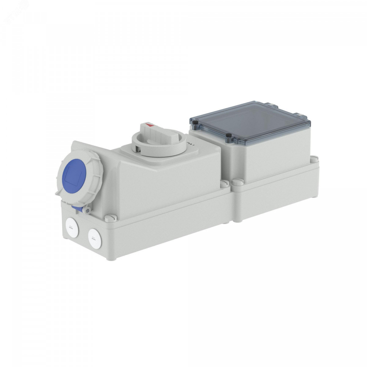 Розетка наружной установки с механической блокировкой и DIN-рейкой на 6 модулей IP67 63А 2P+E 230В