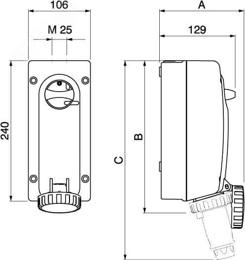 Розетка наружной установки с механической блокировкой и боковым расположением разъема IP67 32