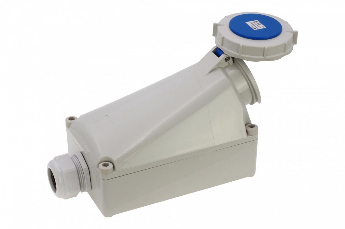 Розетка настенная 125A/230V/1P+N+E/IP67, имеет винтовые латунные контакты. Корпус выполнен из полиамида, сальник в комплекте