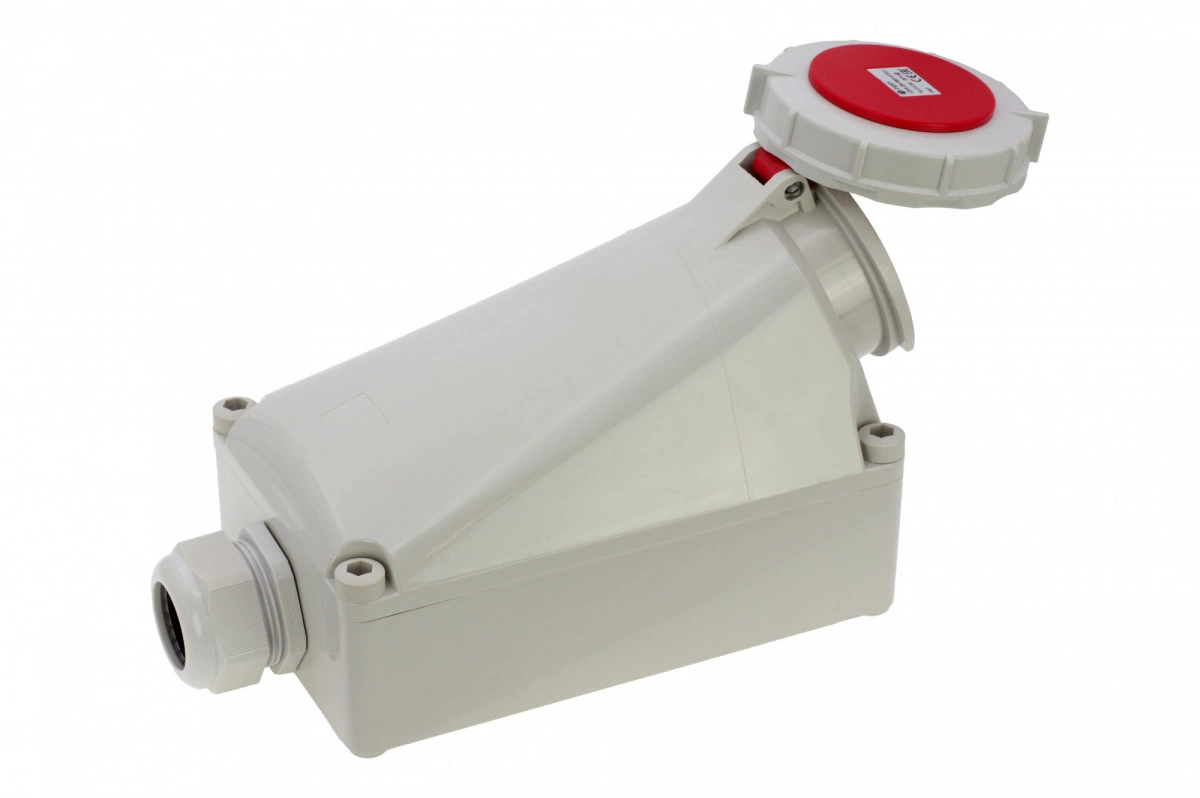 Розетка настенная 125A/400V/3P+E/IP67, имеет винтовые латунные контакты. Корпус выполнен из полиамида, сальник в комплекте