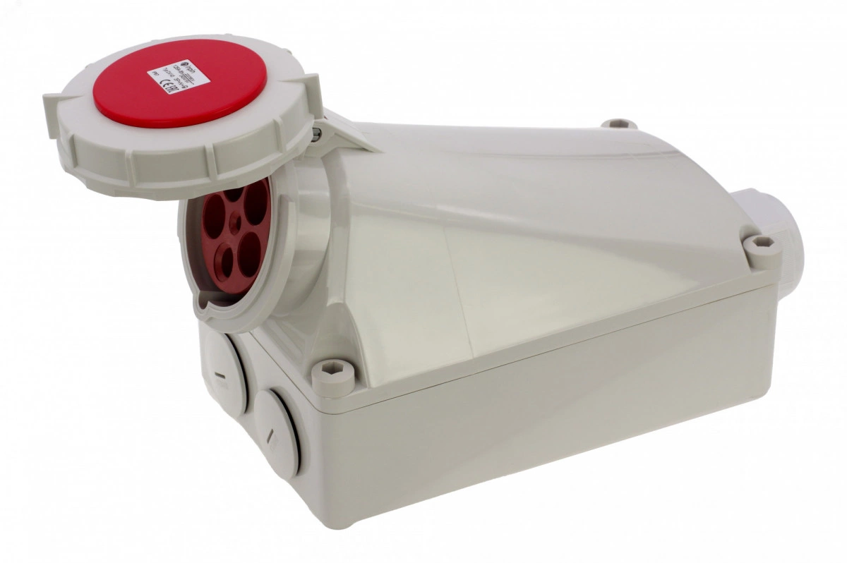 Розетка настенная 125A/400V/3P+N+E/IP67, имеет винтовые латунные контакты. Корпус выполнен из полиамида, сальник в комплекте
