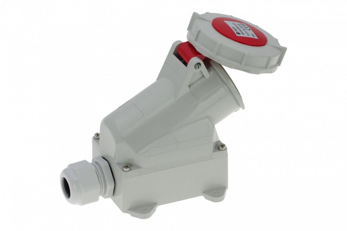 Розетка настенная 16A/400V/3P+E/IP67, имеет винтовые латунные контакты. Корпус выполнен из полиамида, сальник в комплекте