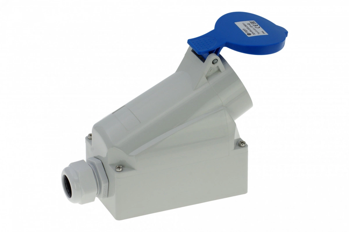 Розетка настенная 32A/230V/1P+N+E/IP44, имеет винтовые латунные контакты. Корпус выполнен из полиамида, сальник в комплекте