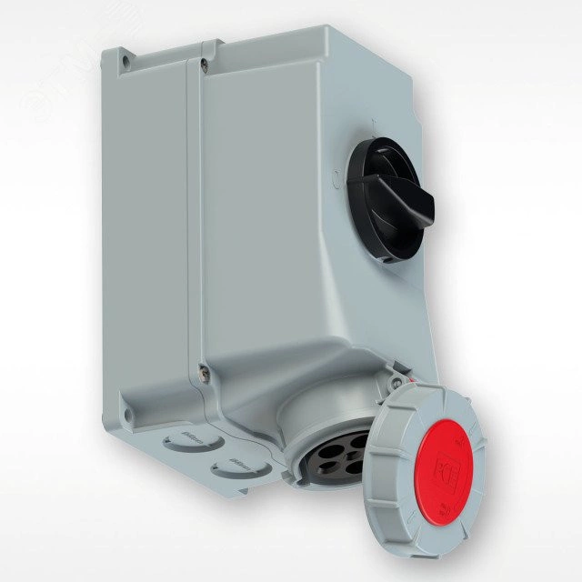 Розетка настенная 63А/400V/3P+E/IP67, с выключателем и блокировкой, материал - полиамид, винтовые клеммы, цвет изделия красный