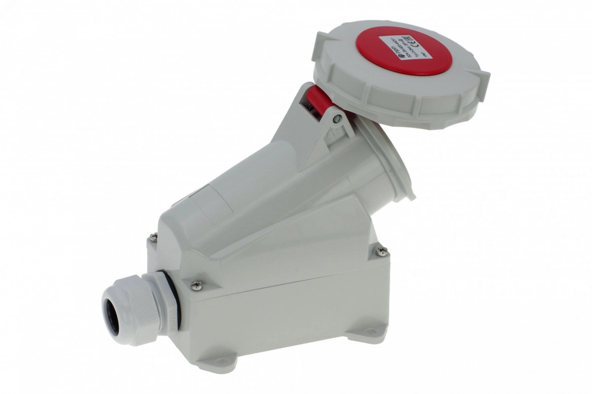 Розетка настенная контейнерная 32A/400V/3P+E/IP67/3h, контакты выполнены из никеля, винтовые. Корпус выполнен из полиамида, сальник в комплекте