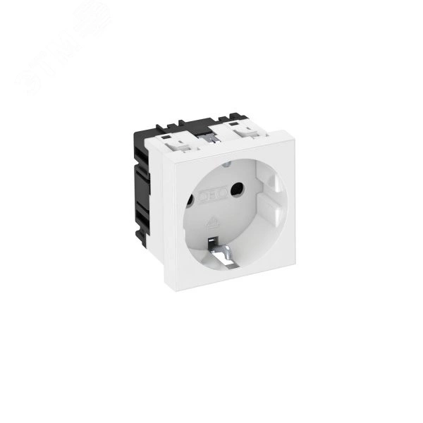 Розетка с заземляющим контактом, одинарная 0°, с защитными шторками, с автоматическими клеммами, 2-полюсная, 16 A, 250 V~, автоматические клеммы соответствуют стандарту ГОСТ Р51322.1-2001 МЭК 60884-1:2006.