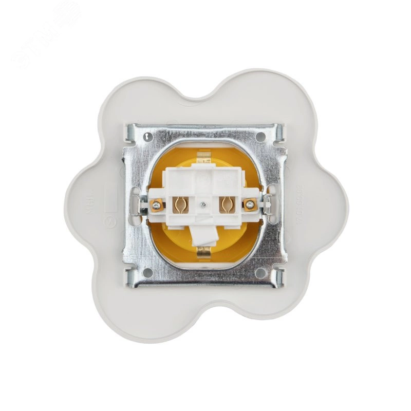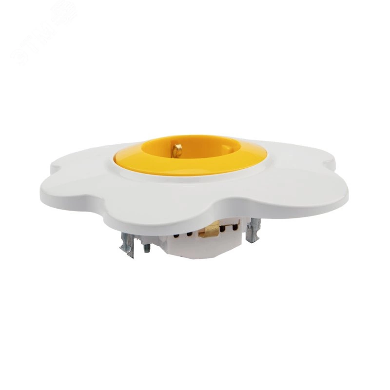 Розетка одноместная KRANZ HAPPY Яичница скрытой установки, заземл и шторками, желтая/белая