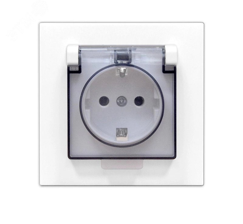 Розетка одноместная с прозрачной крышкой UNIVersalсерия Афинас/з, с/у, 16А, 220В, белая (еврослот), механизм