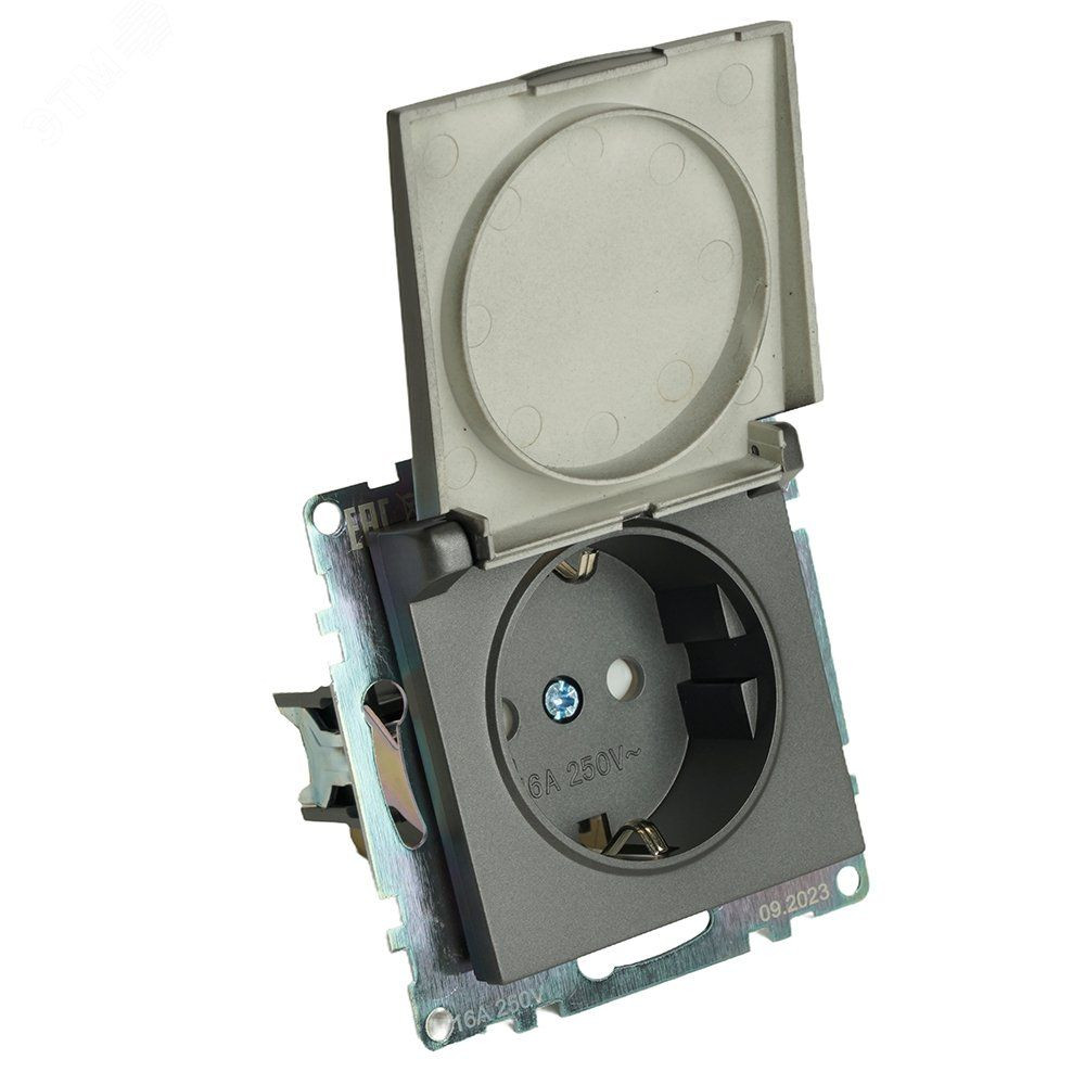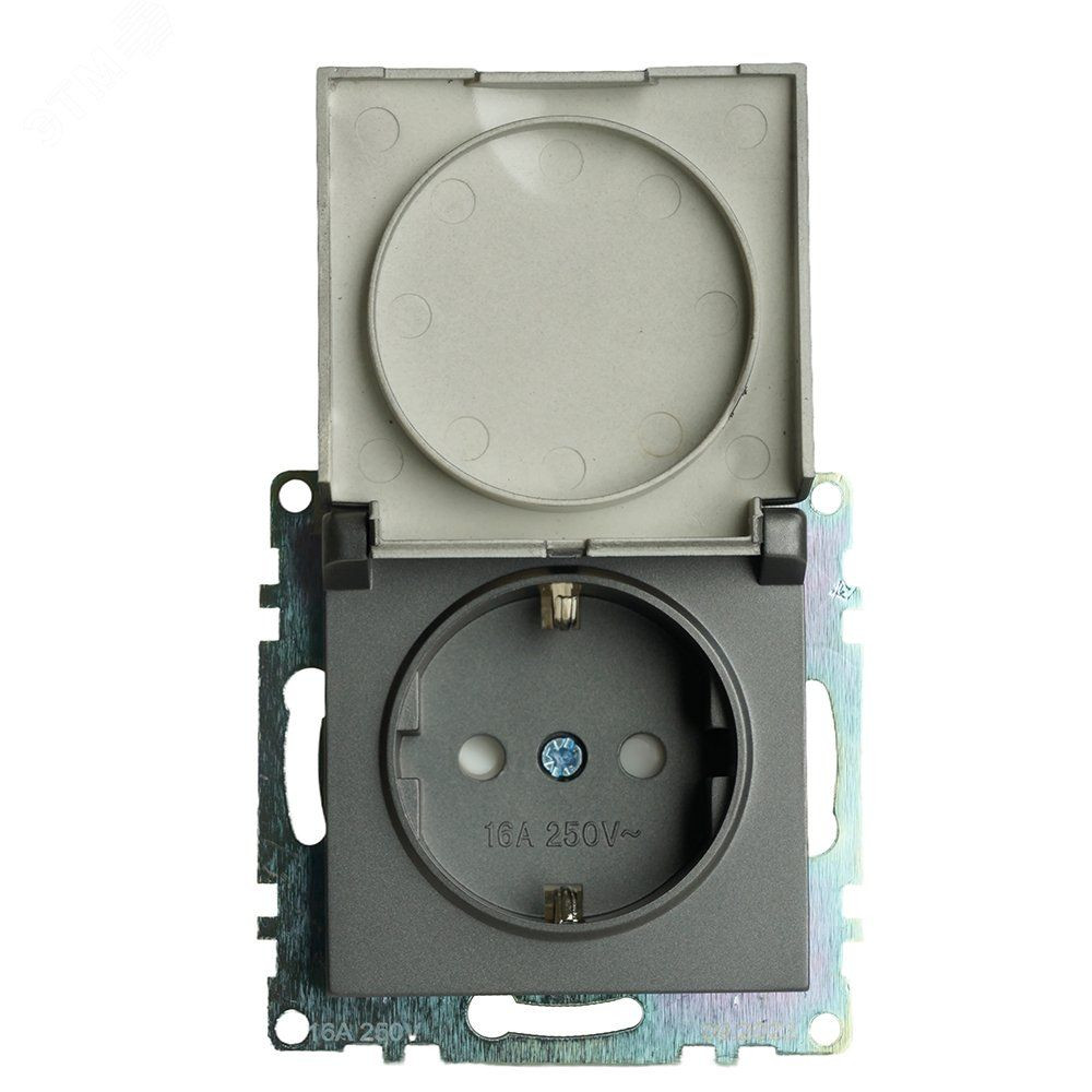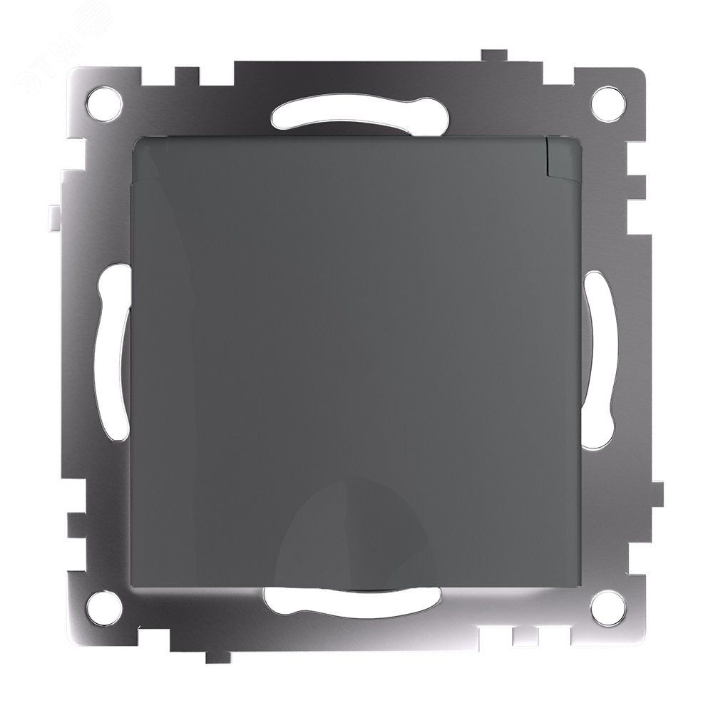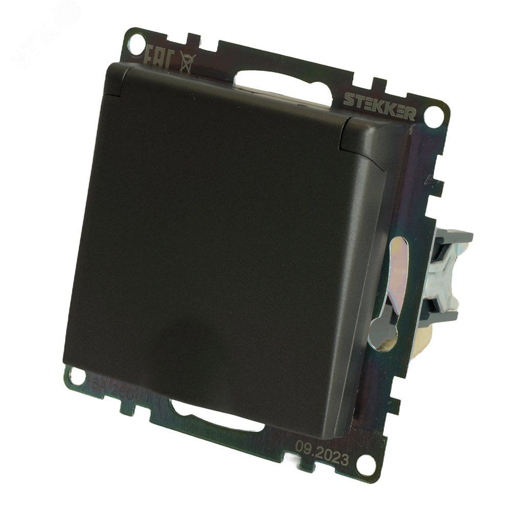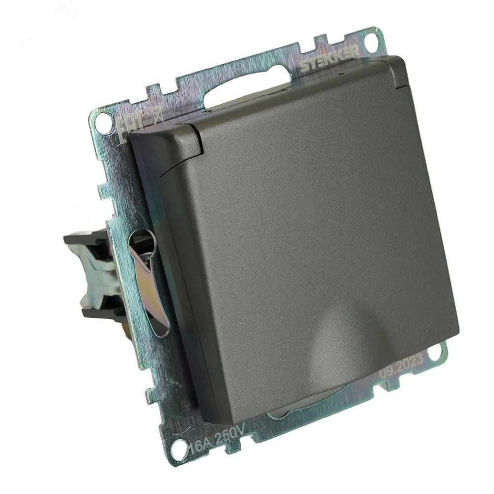 Розетка одноместная с/з с крышкой серия Катрин графит STEKKER