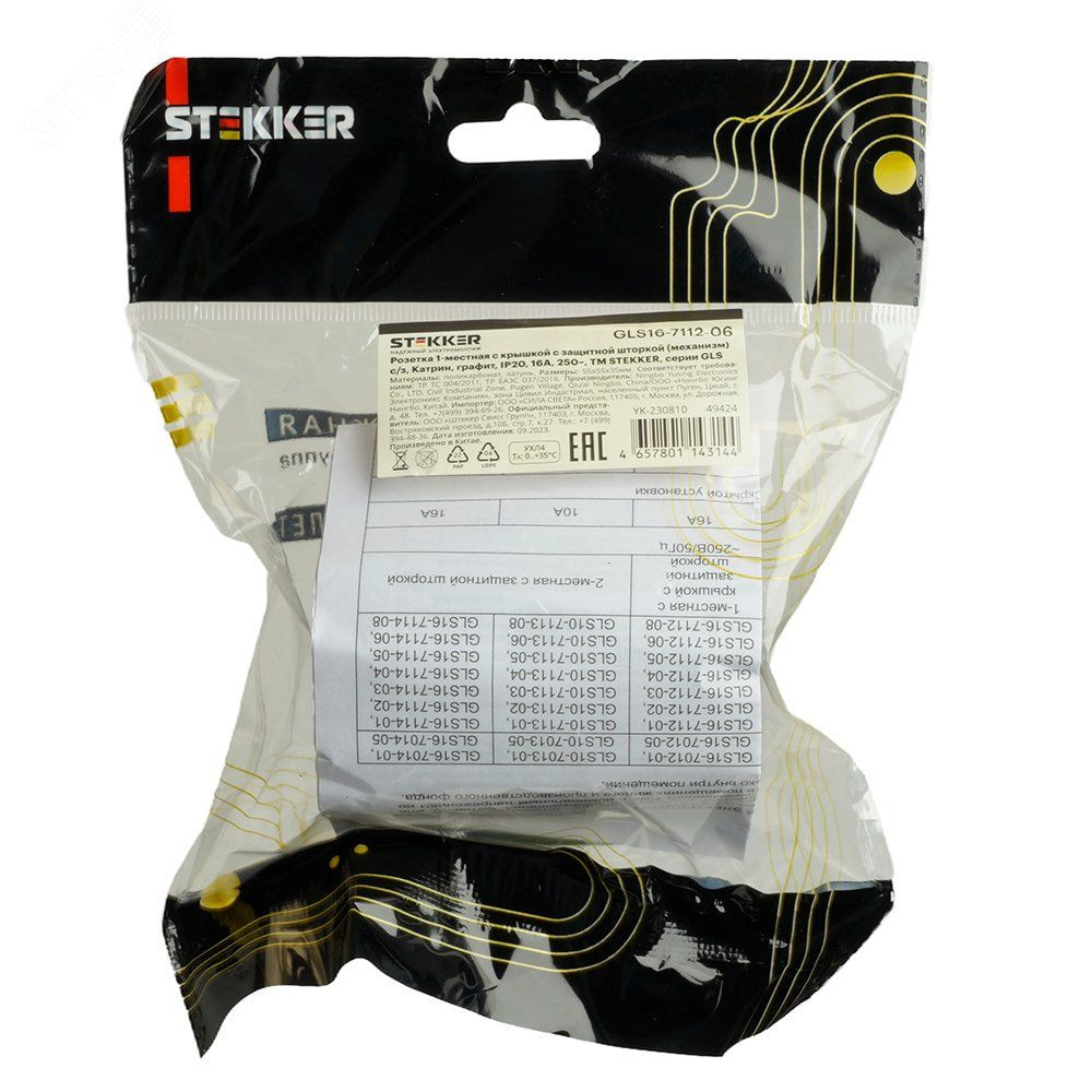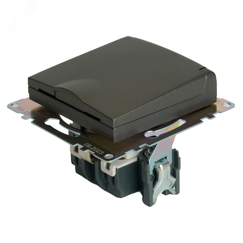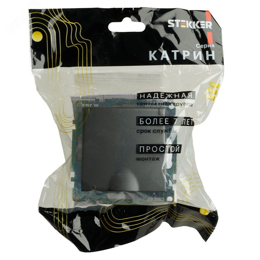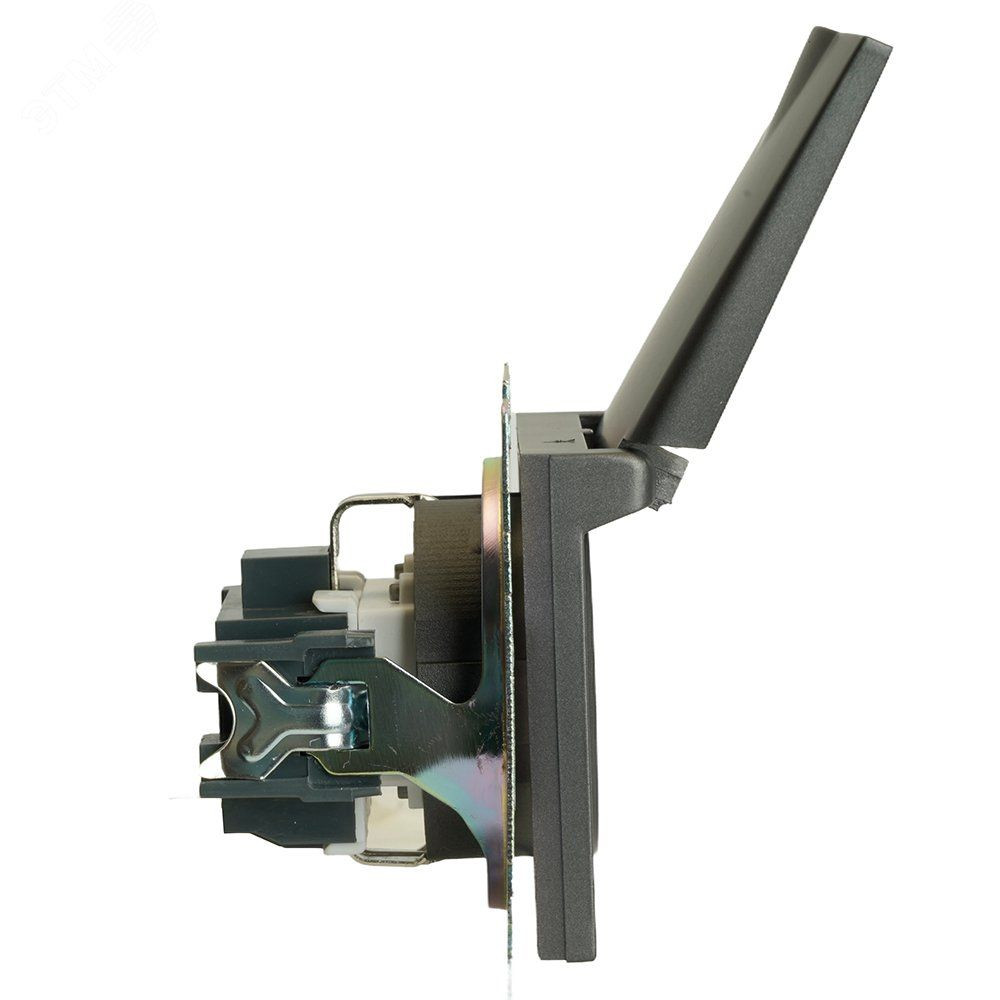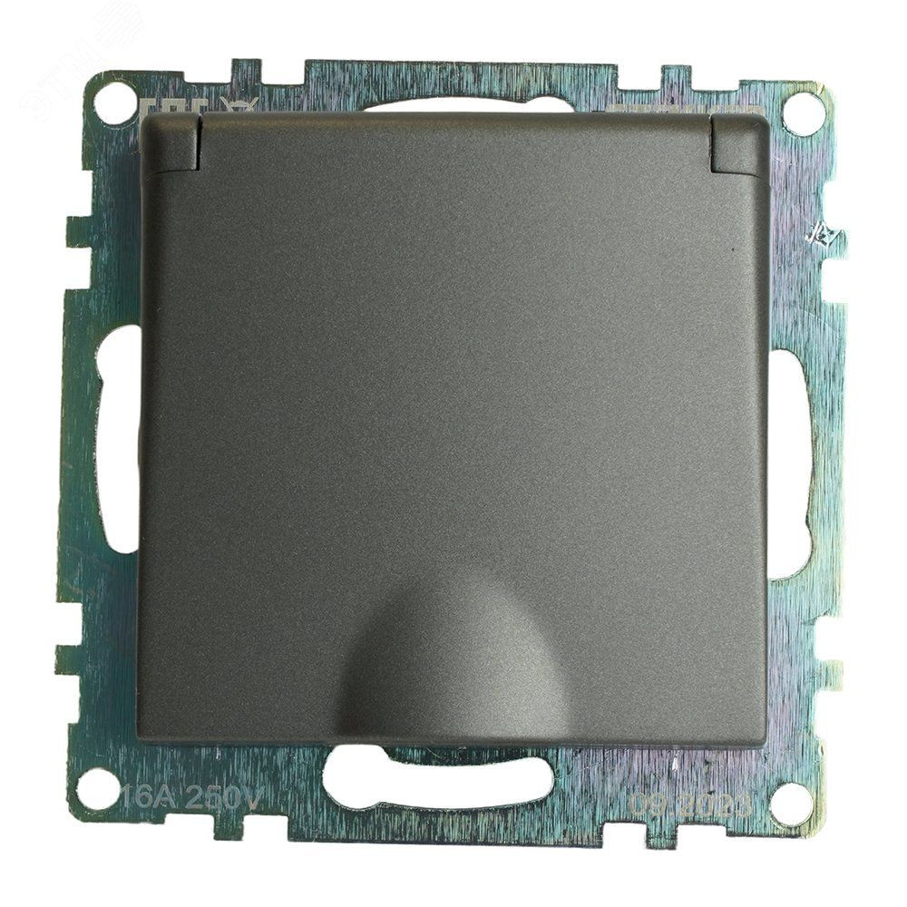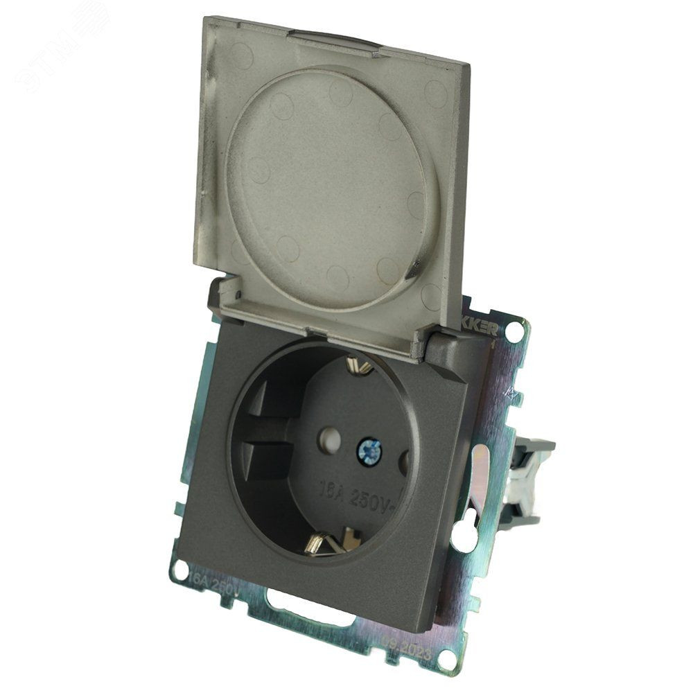 Розетка одноместная с/з с крышкой серия Катрин графит STEKKER