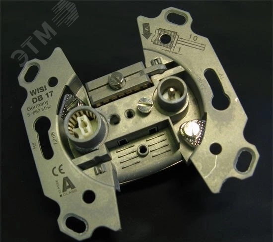 Розетка оконечная TV/FM (-0.5 дБ). Оконечная розетка предназначена именно для установки в конце цепочки из проходных розеток. Иными словами любая цепь с применением проходных розеток должна завершаться оконечной розеткой. Отличие оконечной розетки от проходной лишь в том, что у оконечной только одно крепление для кабеля ''вход'', а у проходной два ''вход'' и ''выход''.