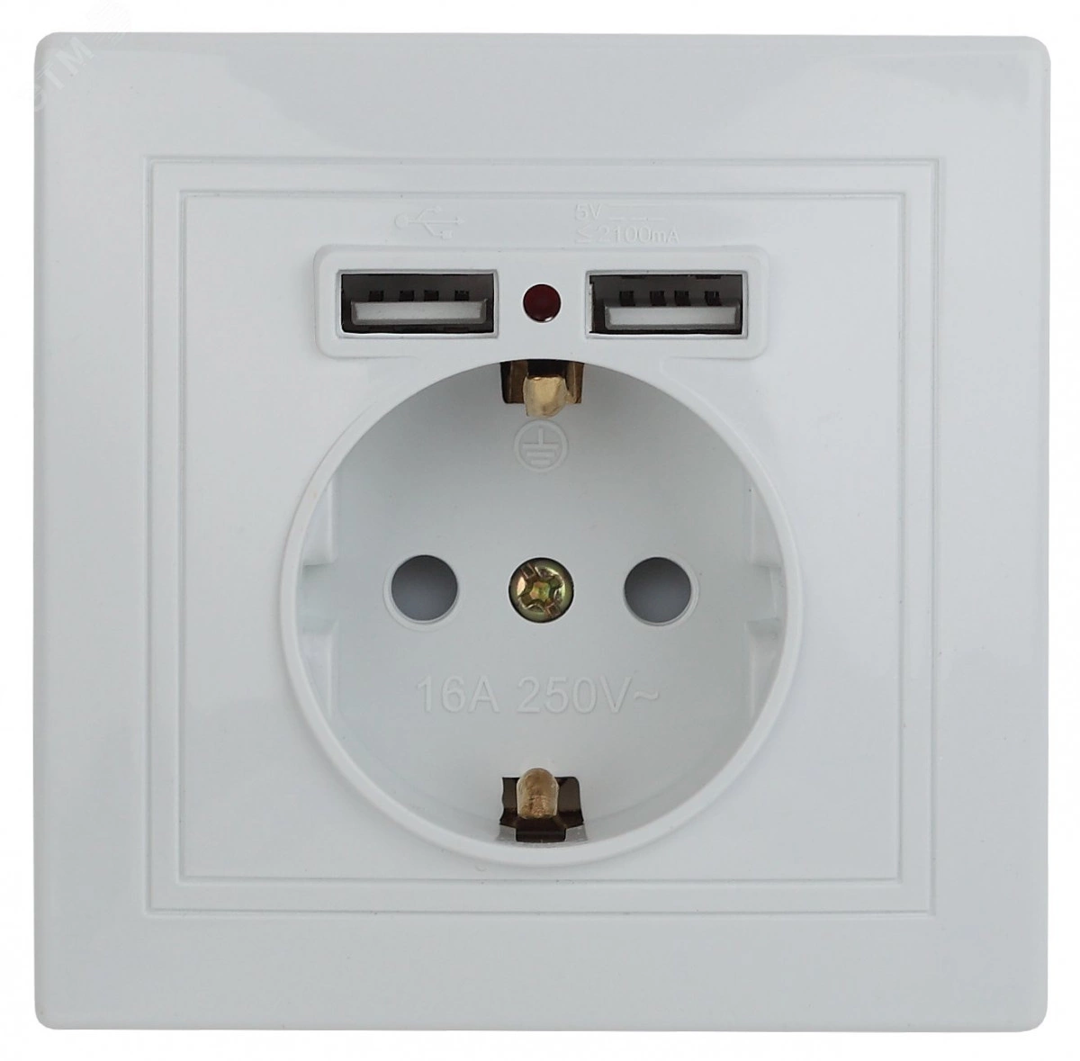Розетка P+E Schuko со шторками, 16А-250В + 2хUSB 5В-2,1А, IP20, СУ, Plano, белый, 1-410-01