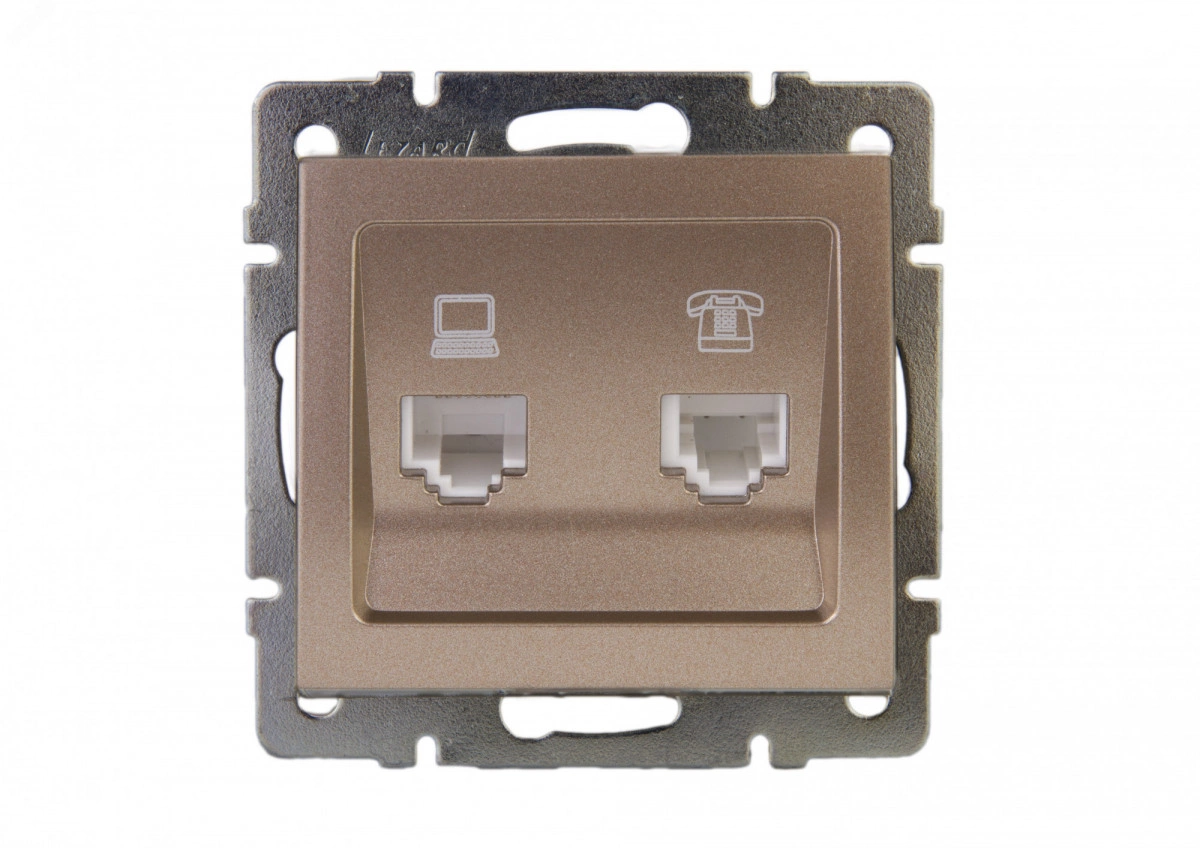 Розетка RAIN компьютерная + телефон бронза матовая механизм