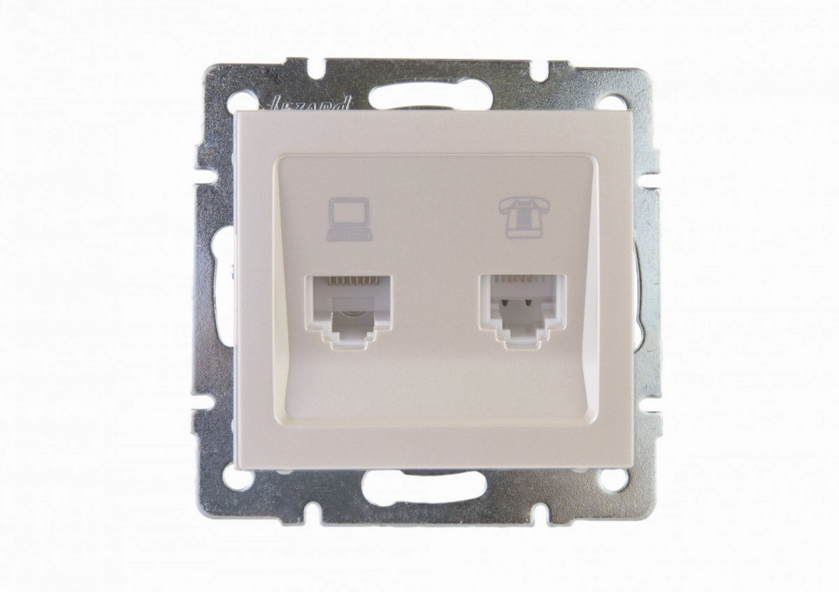 Розетка RAIN компьютерная + телефон жемчужно-белый перламутр механизм