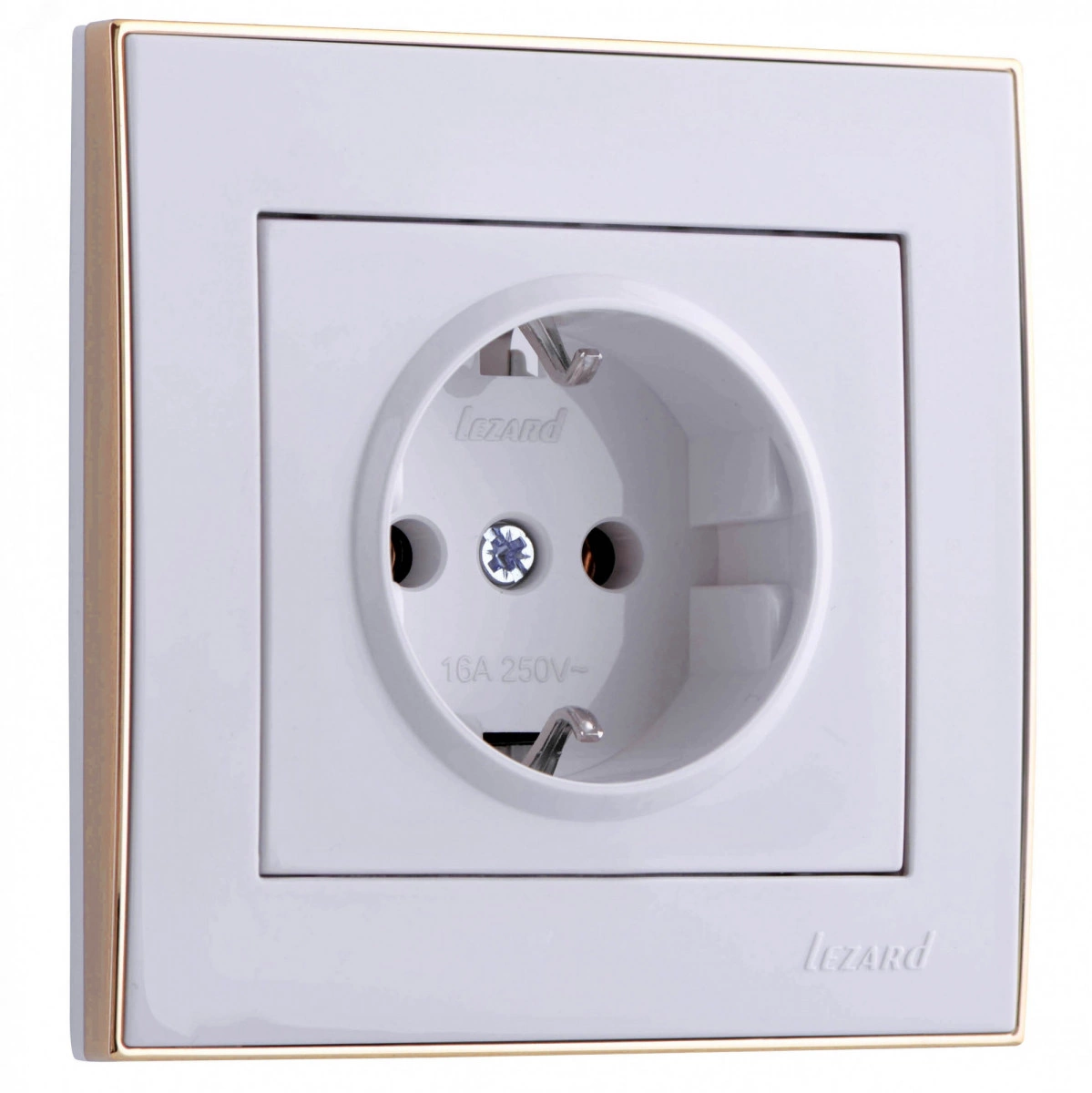 Розетка RAIN с/з керамика белая с боковой вставкой золото