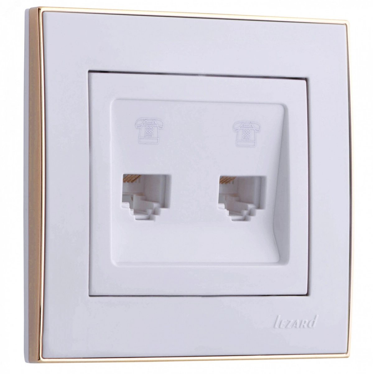 Розетка RAIN телефонная 2-ая евро белая с боковой вставкой золото