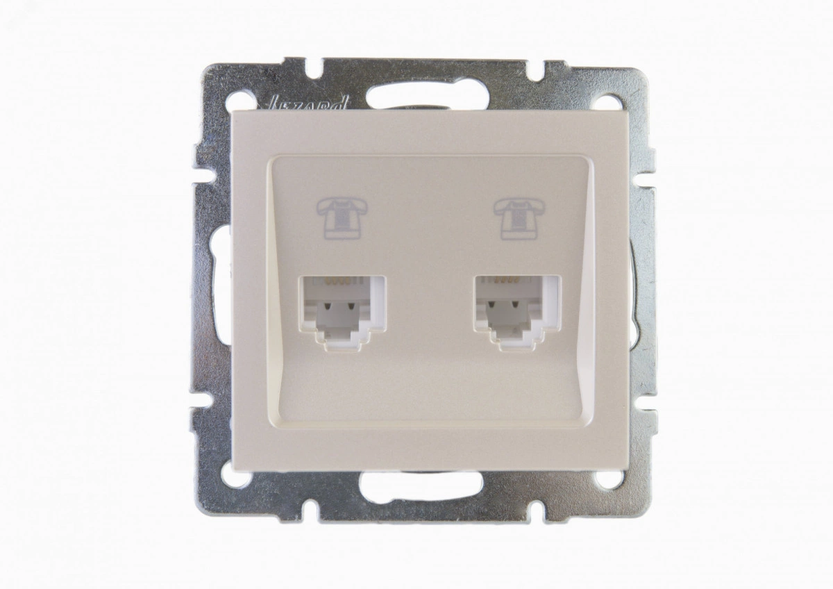 Розетка RAIN телефонная 2-ая евро жемчужно-белый перламутр механизм