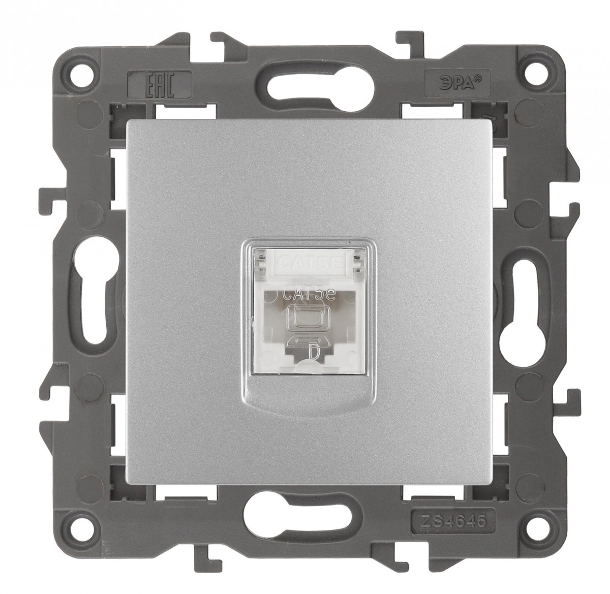 Розетка интернет RJ45 серии Эра Elegance цвет алюминий 14-3107-03. Рамки приобретаются отдельно. Рамки Эра Elegance ПЛАСТИК: 1 пост 14-5001-хх, 2 поста 14-5002-хх, 3 поста 14-5003-хх, 4 поста 14-5004-хх, 5 постов 14-5005-хх, СТЕКЛО: 1 пост 14-5101-хх, 2 поста 14-5102-хх, 3 поста 14-5103-хх, 4 поста 14-5104-хх, МЕТАЛЛ: 1 пост 14-5201-хх, 2 поста 14-5202-хх, 3 поста 14-5203-хх, 4 поста 14-5204-хх, ДЕРЕВО: 1 пост 14-5301-хх, 2 поста 14-5302-хх, 3 поста 14-5303-хх, 4 поста 14-5304-хх (хх - код цвета: 00-прозрачный, 01-белый, белёный дуб, 02-слоновая кость, 03-алюминий, 04-шампань, 05-чёрный, чёрное дерево, 07-ясень, 09-дуб, 10-венге, 11-клён, 14-медь, 21-жёлтый, 22-оранжевый, 23-красный, 25-бордо, 26-лайм, 27-зелёный, 28-голубой, 29-синий, 30-розовый, 31-мокко, 32-серый, 41-сталь, 42-титан).