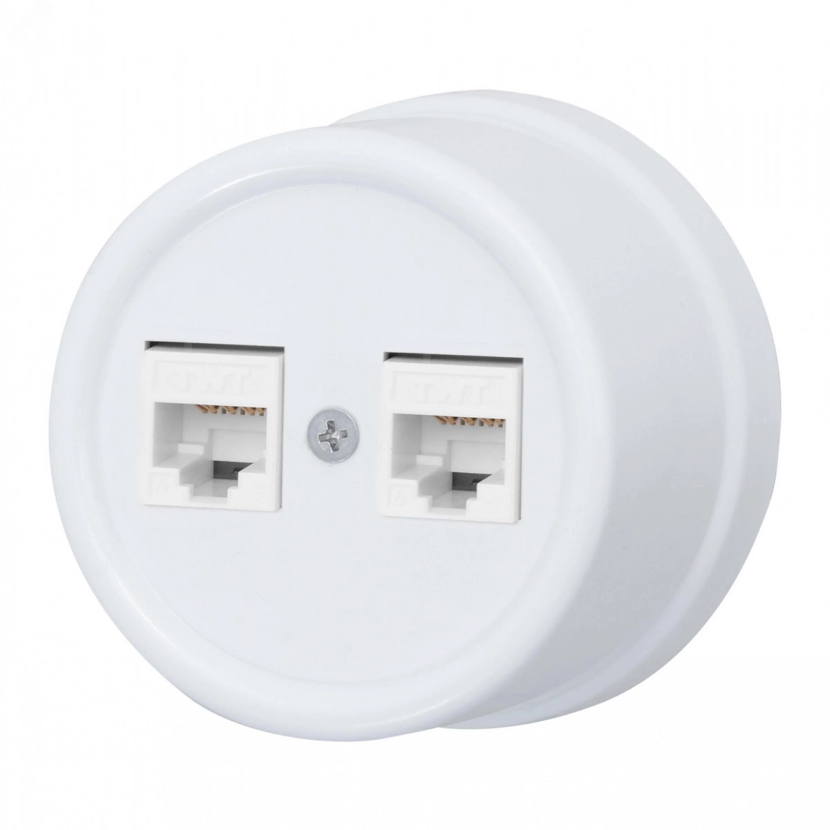 Розетка RJ45 информационная двойная, пластик, цвет белый
