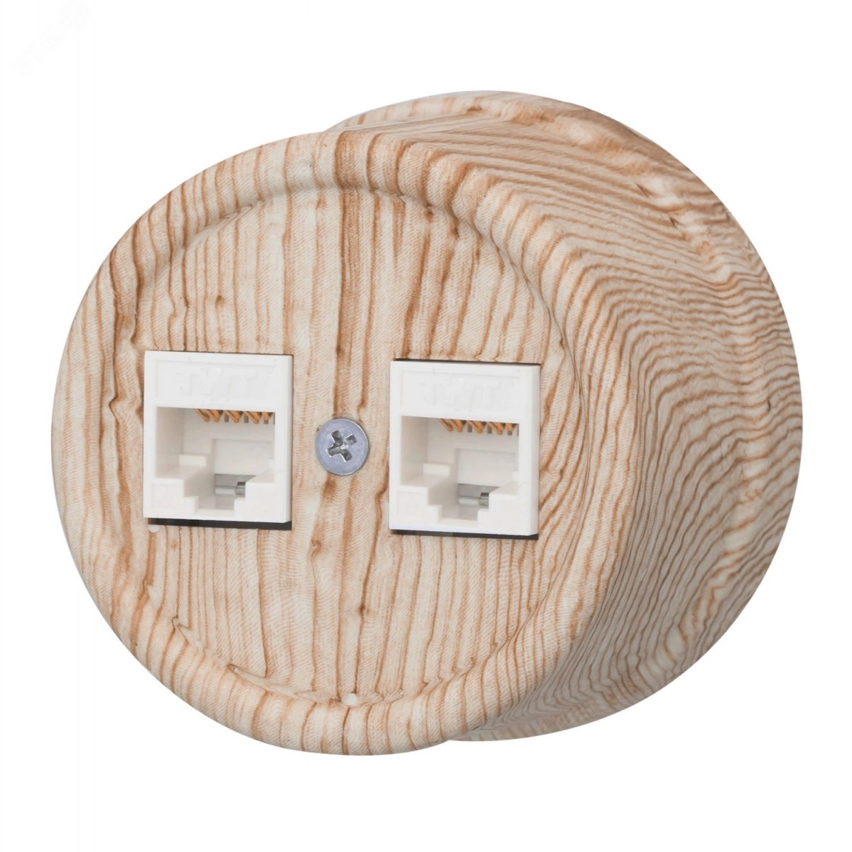 Розетка RJ45 информационная двойная, пластик, цвет Карельская Сосна