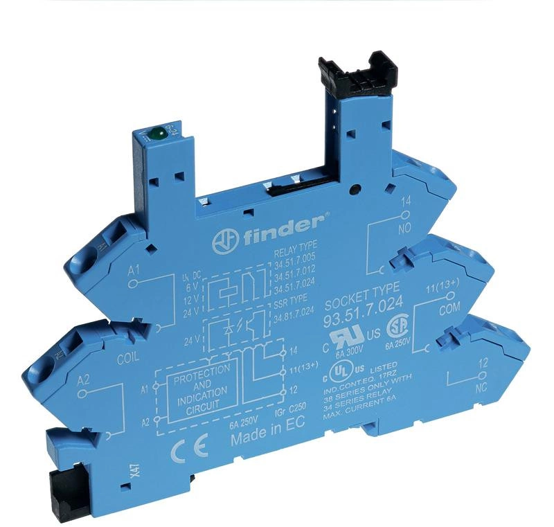 Розетка с безвинт. клеммами (пружинный зажим) для реле 34 серии 24В DC в комплекте пластик. клипса опции: LED FINDER 93517024