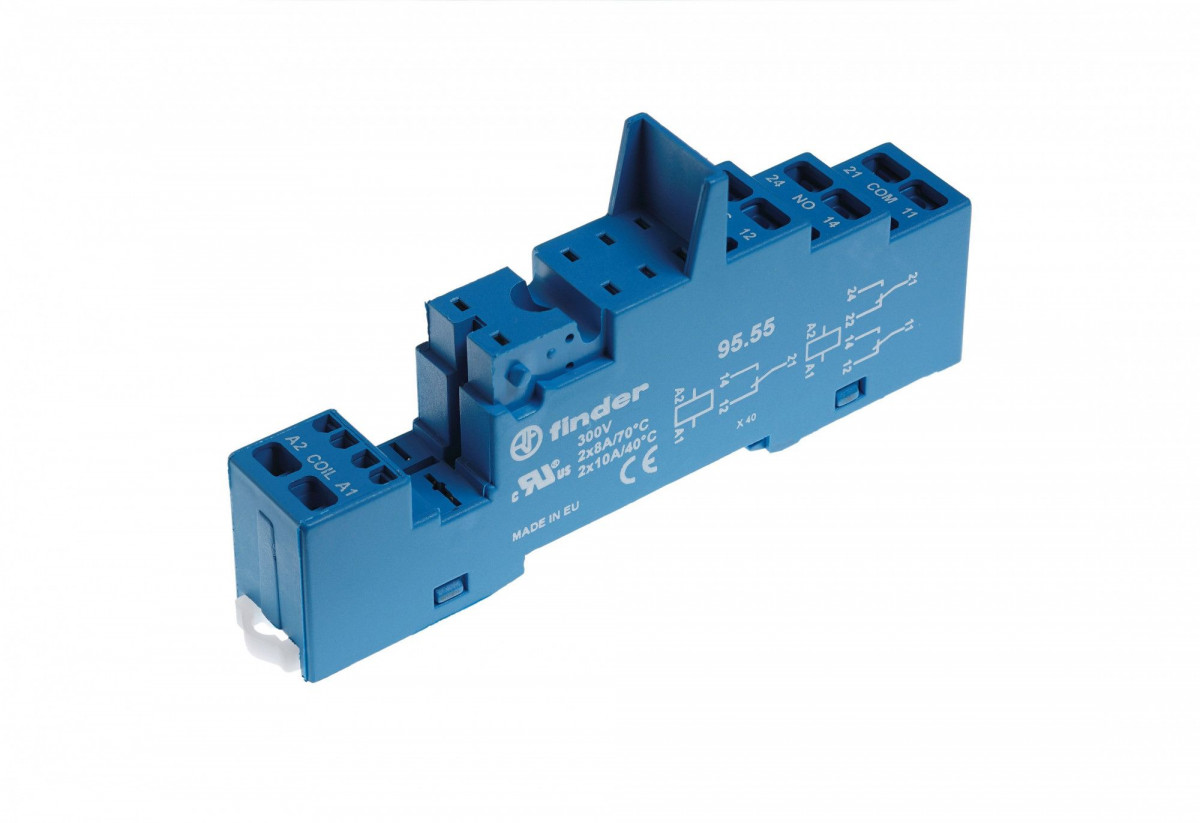 Розетка с безвинтовыми клеммами (пружинный зажим) для реле 40.51, 40.52, 40.61, 40.62, применяются модули 99.02, 86.30, в комплекте пластиковая клипса 095.91.3, версия: синий цвет
