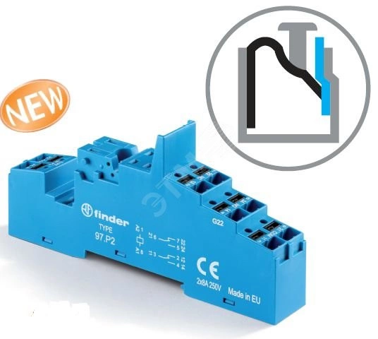 Розетка с безвинтовыми клеммами Push-in для реле 46.61, применяются модули 86.30, 99.02, в комплекте металлическая клипса 097.71, версия: серый цвет, для ЖД-приложений