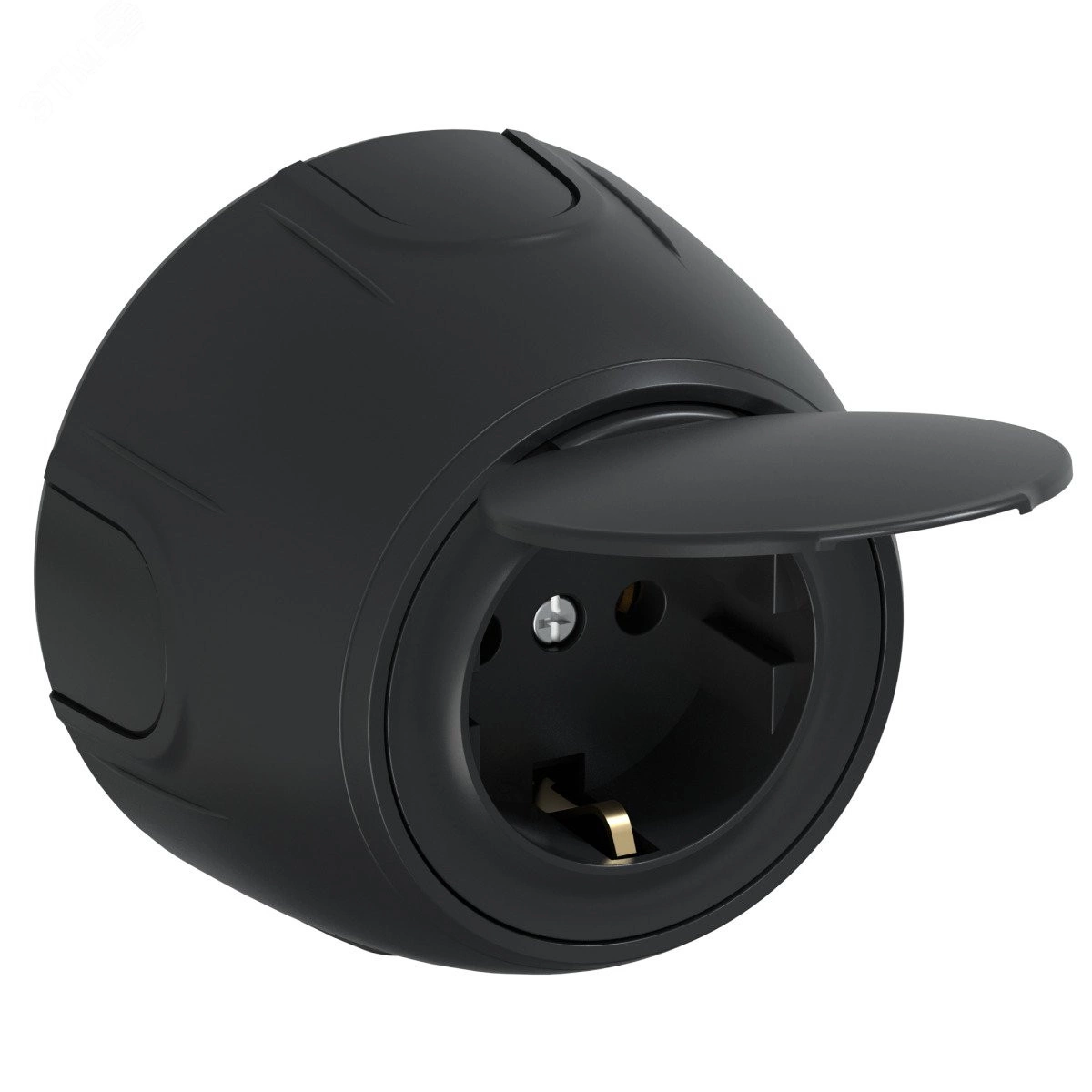 Розетка с крышкой, с заземлением Rotondo, винтовые контакты, цвет черный