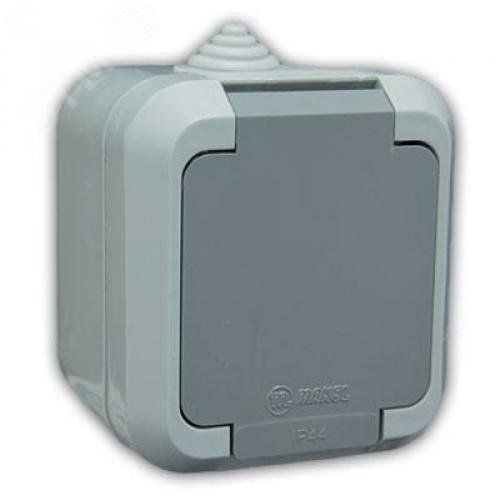 Розетка с крышкой с/з IP 44 серый