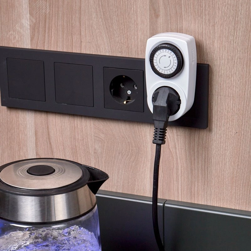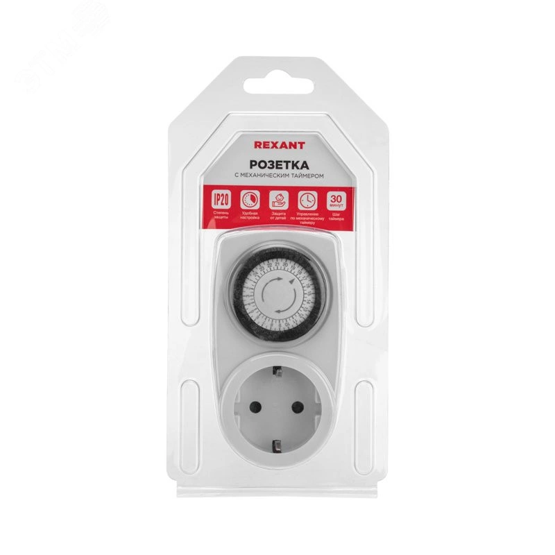 Розетка с таймером необходима для включения и выключения домашних электрических приборов в ваше отсутствие. Задание программ осуществляется с помощью механического программного диска. Шаг у данного таймера 30 минут, максимальная нагрузка 3500ВТ, степень защиты IP20.