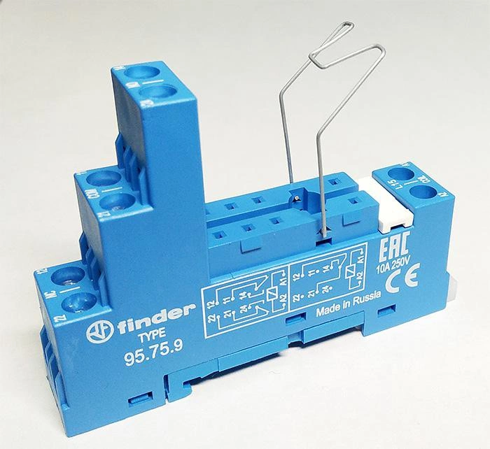 Розетка с винт. клеммами (с зажимной клетью) для реле 40.51 40.52 40.61 40.62 модули 99.01 в комплекте металлич. клипса 095.71 син. FINDER 95759SMA