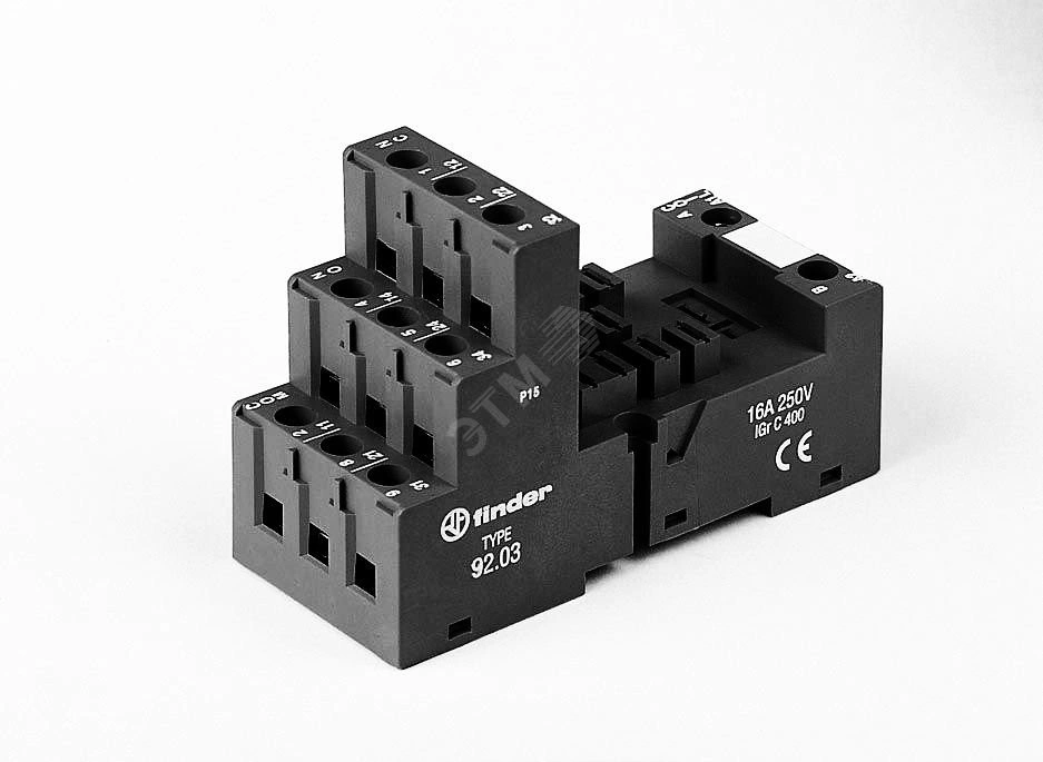Розетка с винтовыми клеммами (с зажимной клетью) ля реле 62.31, 62.32, 62.33, применяются модули 86.00, 86.30, 99.02, в комплекте металлическая клипса 092.71, версия: черный цвет