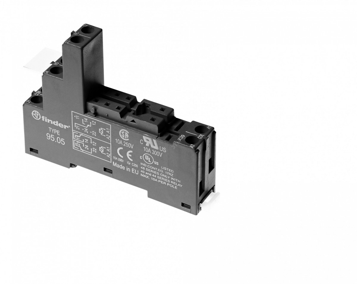 Розетка с винтовыми клеммами (с зажимной клетью) для реле 40.31, применяются модули 99.02, 86.30, в комплекте пластиковая клипса 095.01, версия: черный цвет (заказ минимум/кратно 1000шт)
