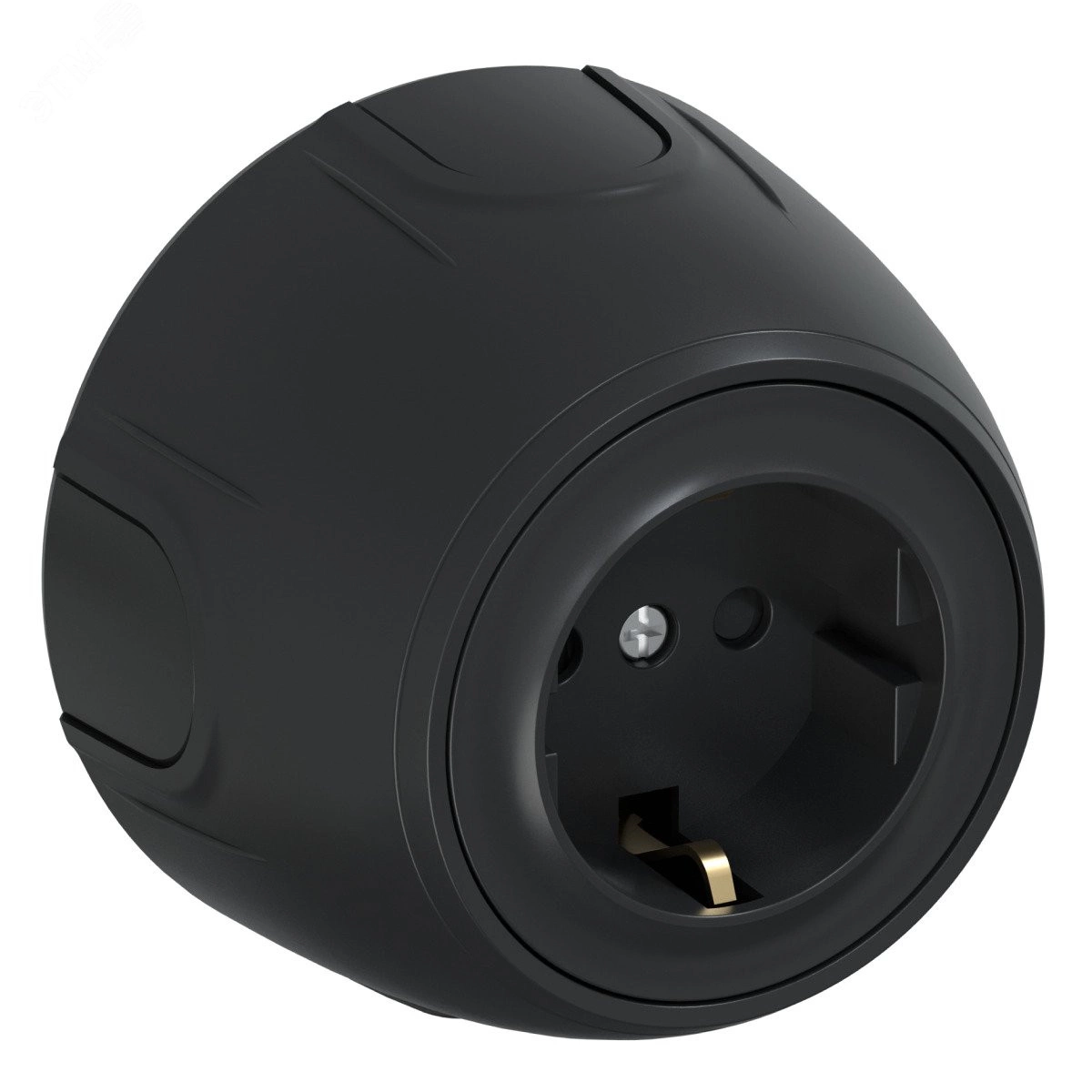 Розетка с заземлением Rotondo, защитные шторки, винтовые контакты, цвет черный