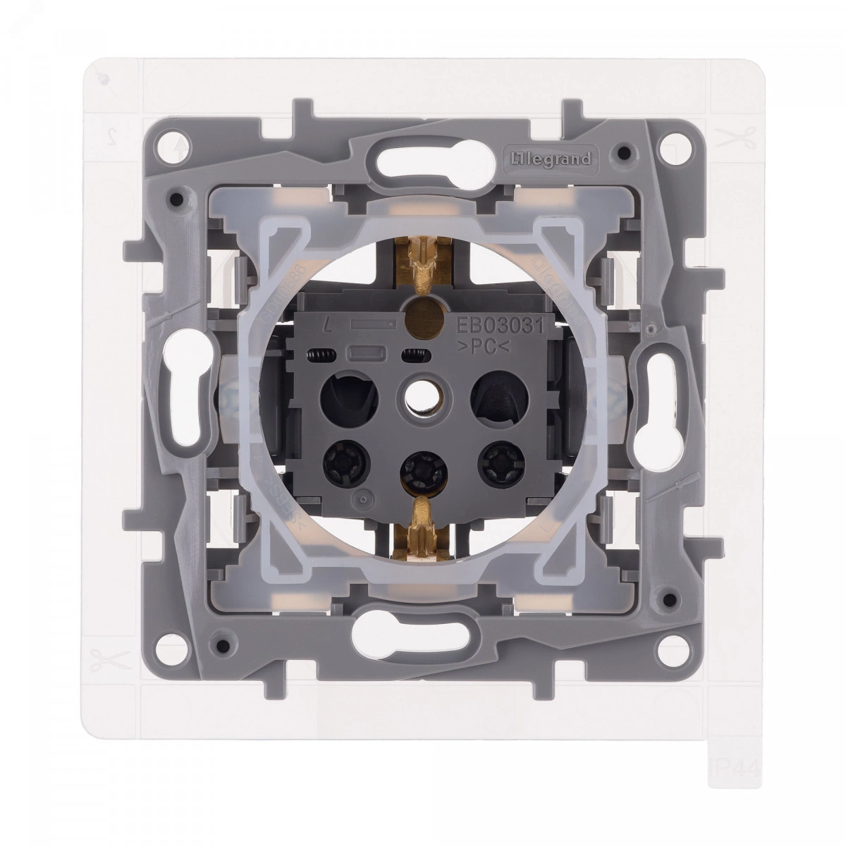 Розетка с заземлением, защитной крышкой и интегрированными защитными шторками Legrand Etika для скрытого монтажа, цвет ''Слоновая кость'', степень пылевлагозащиты IP44, номинальный ток 16А, напряжение ~250В, максимальная мощность 3680Вт. Применяется для электропитания в зданиях с проводкой с заземлением (с защитным проводником). Предназначена для установки в местах с повышенной влажностью. Оснащена интегрированными шторками, которые защищают детей и других пользователей от удара электрическим током. Особенности изделия - Надёжная IP защита - мембрана с обратной стороны механизма и уплотнительная прокладка между лицевой панелью и корпусом механизма - Контактная группа изготовлена из высококачественной латуни CuZn37, с высокой степень упругости и сохраняет плотный контакт с вилкой - Зажимы для присоединения проводников винтовые П-образной формы исключают боковое выдавливание провода.