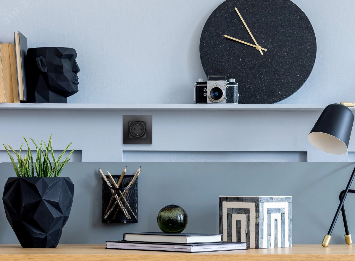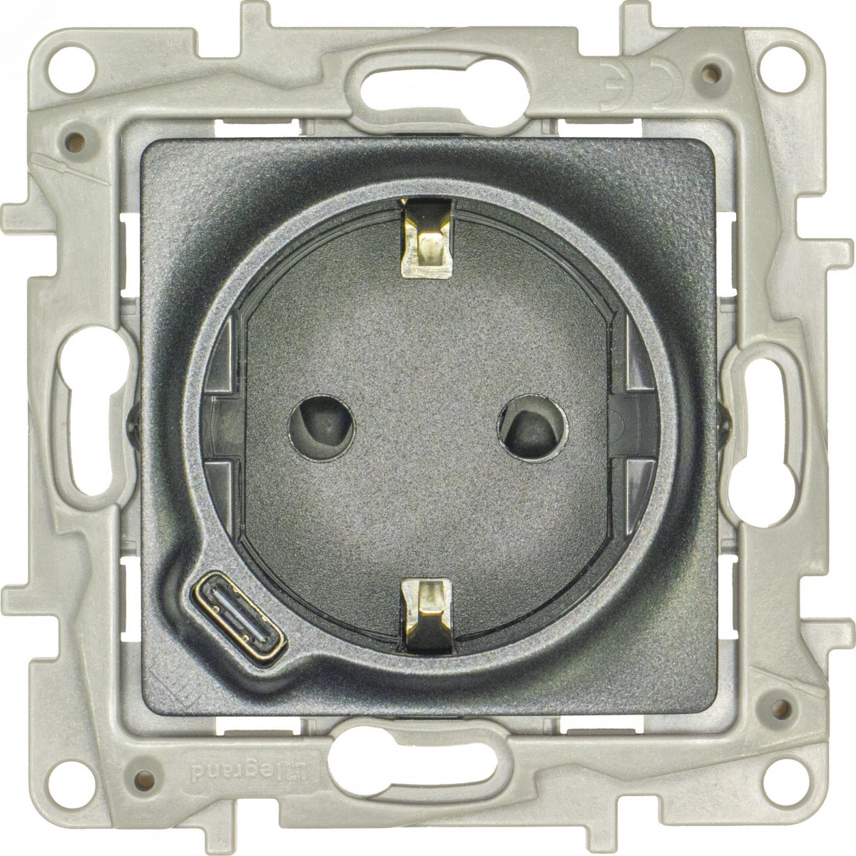 Полное описание: Розетка с заземлением с USB тип C - Etika - со шторками 16А 250В 1500мА 7,5Вт безвинтовые зажимы - антрацит